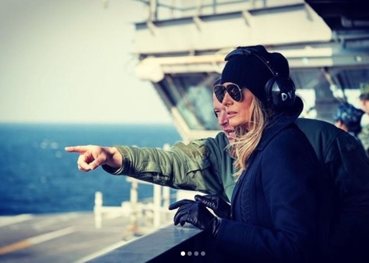 Povedala mu je, kako zelo pomembna se ji zdi podpora vojaški službi in pojasnila, zakaj se je odločila, da preživi dan z vojaškimi člani in njihovimi družinami: »Prihajajo prazniki, večina jih bo preživela brez družin, zato jim želim pokazati, da smo z njimi, predsednik, jaz, celotna država.« Obisk letalonosilke je bil zanjo, kot je omenila na tviterju, »nepozaben dan«.