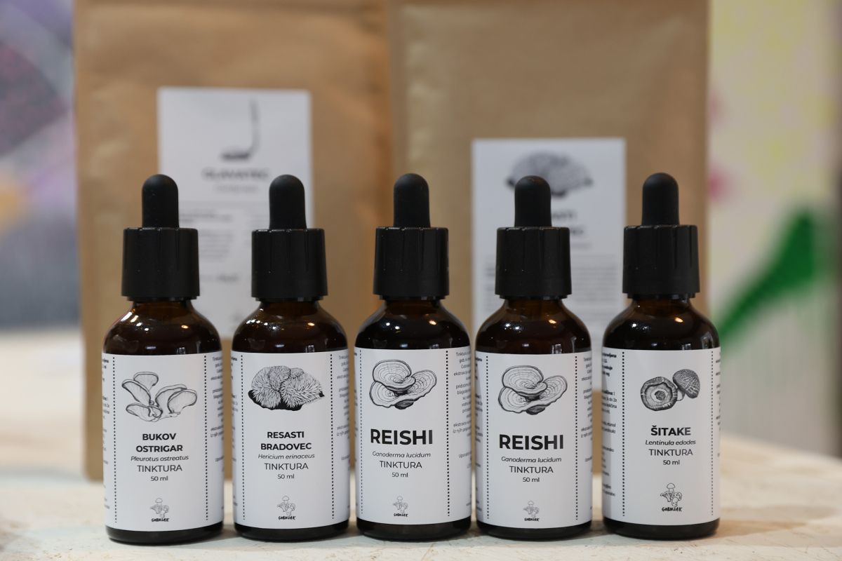 Ob obisku Gobnjaka sta nas sprejela Rok Čigon in Primož Turnšek, ki se ukvarja z laboratorijskim delom gojenja gob. Njuna strast do gob in narave je očitna, ko nas popeljeta skozi prostor, kjer se gojijo različne vrste kulinaričnih in medicinskih gob, kot so ostrigarji, šitake, reishi in kordiceps. V Gobnjaku ponujajo široko paleto izdelkov – od svežih in sušenih gob do predpripravljenih kompletov za gojenje, čepkov z micelijem in tinktur. »Vsakdo si lahko doma vzgoji svoje gobe,« pojasni Primož Turnšek, medtem ko nam pokaže različne komplete, ki jih ponujajo. Poleg tega lahko obiskovalci na delavnicah spoznajo osnove gojenja in prepoznavanja gob.