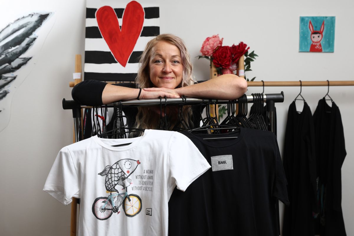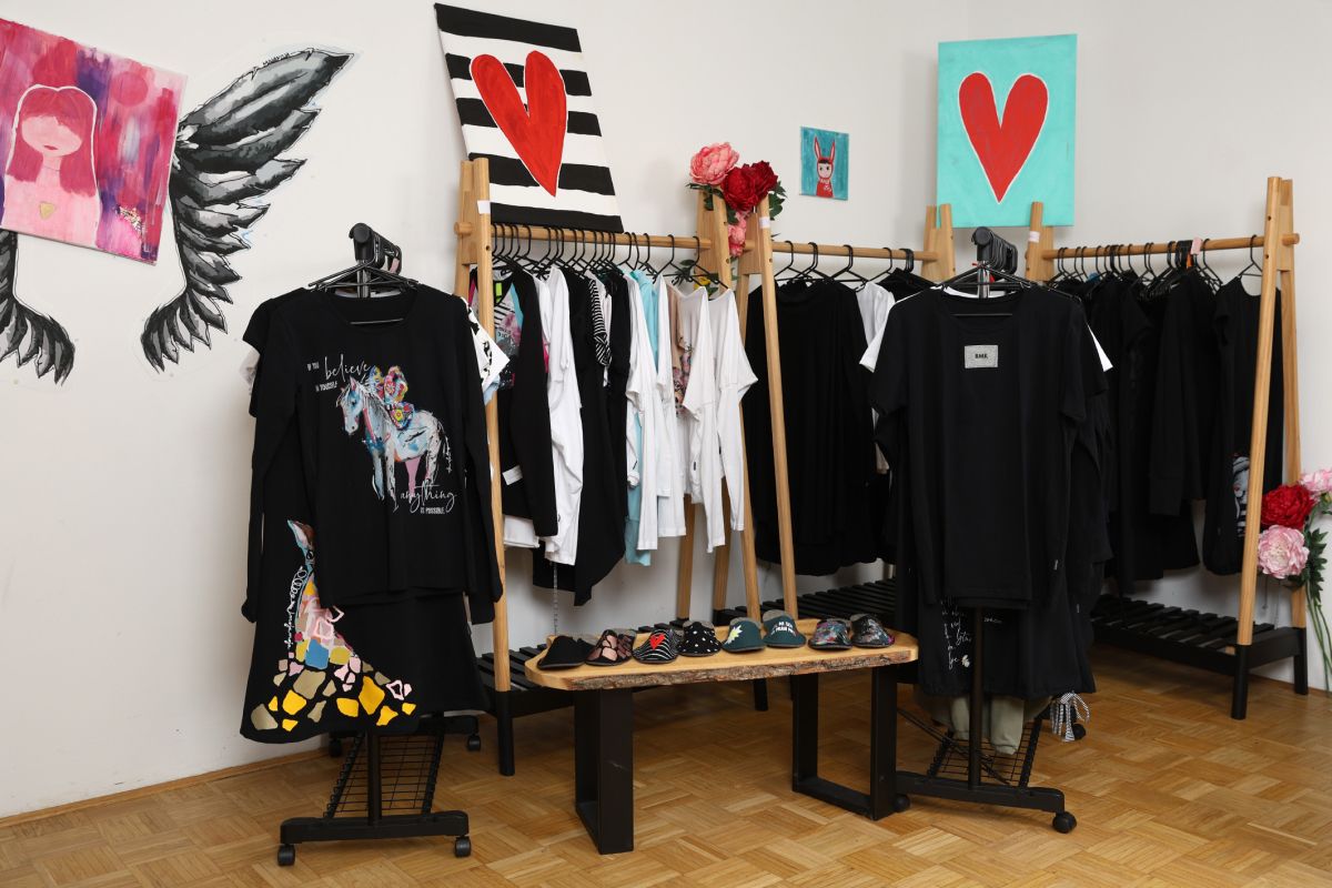 Cene drži dostopne kljub konkurenci velikih verig. »Nizke marže so sicer slabe za posel na prvo žogo, vendar dobre za mojo dušo,« pove iskreno. Blago pride od zunaj, vse ostalo – kroji, šivanje, ilustracije – nastaja v Sloveniji, v sodelovanju s tovarno v Kranju. »Ker mi je pomembna družba, v kateri živim.