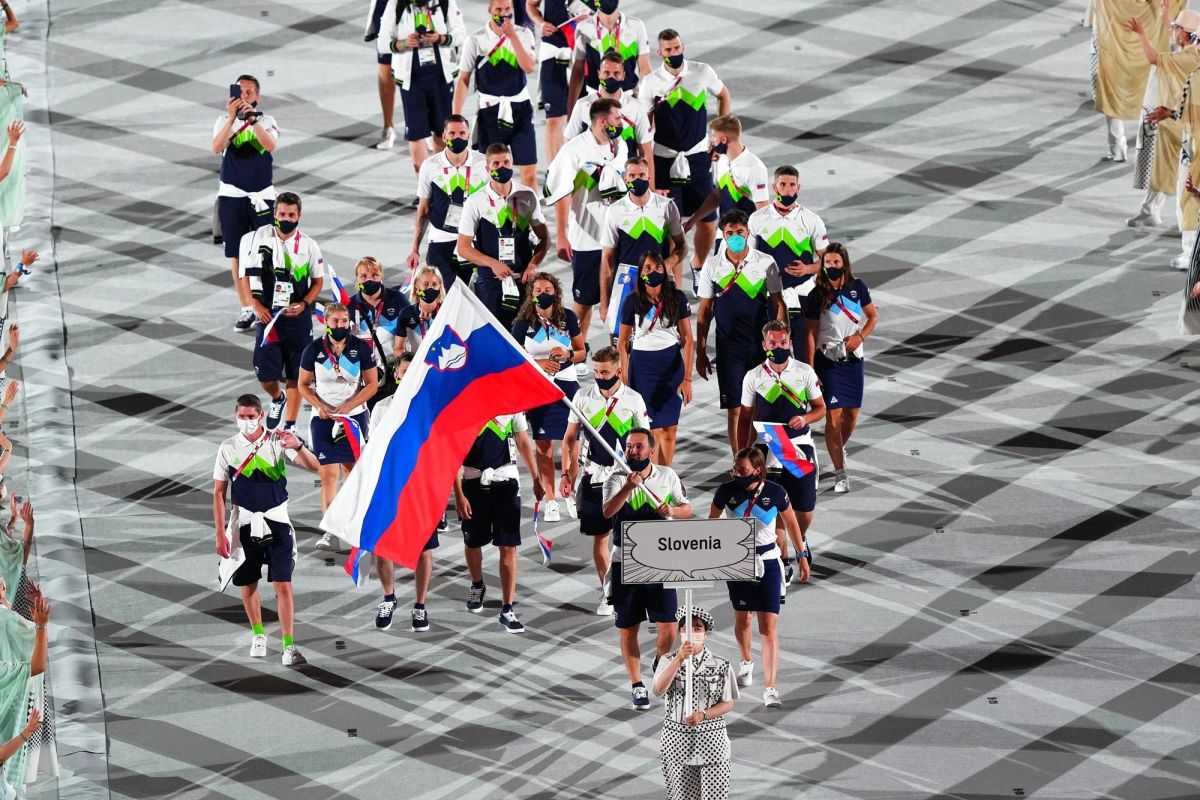 Slovenija je na olimpijski stadion v zdaj že tradicionalnih belih, modrih in zelenih odtenkih zakorakala kot 92. Okrnjeno slovensko delegacijo s 27 člani, med katerimi je bilo 21 športnikov, sta na prizorišče pod slovensko zastavo povedla vidno vesela Terčeljeva in Tokić. Ker nekateri slovenski športniki še niso na prizorišču, drugi pa so zaradi bližajočih se tekmovanj slovesnost izpustili, je bila slovenska ekipa v današnjem mimohodu držav nekoliko okrnjena. Razigrano je sicer bilo že na avtobusu na poti na prizorišče, ko so slovenski košarkaši zapeli Kekčevo pesem, je razvidno iz videa, ki ga je objavil uradni profil Olimpijskega komiteja Slovenije.