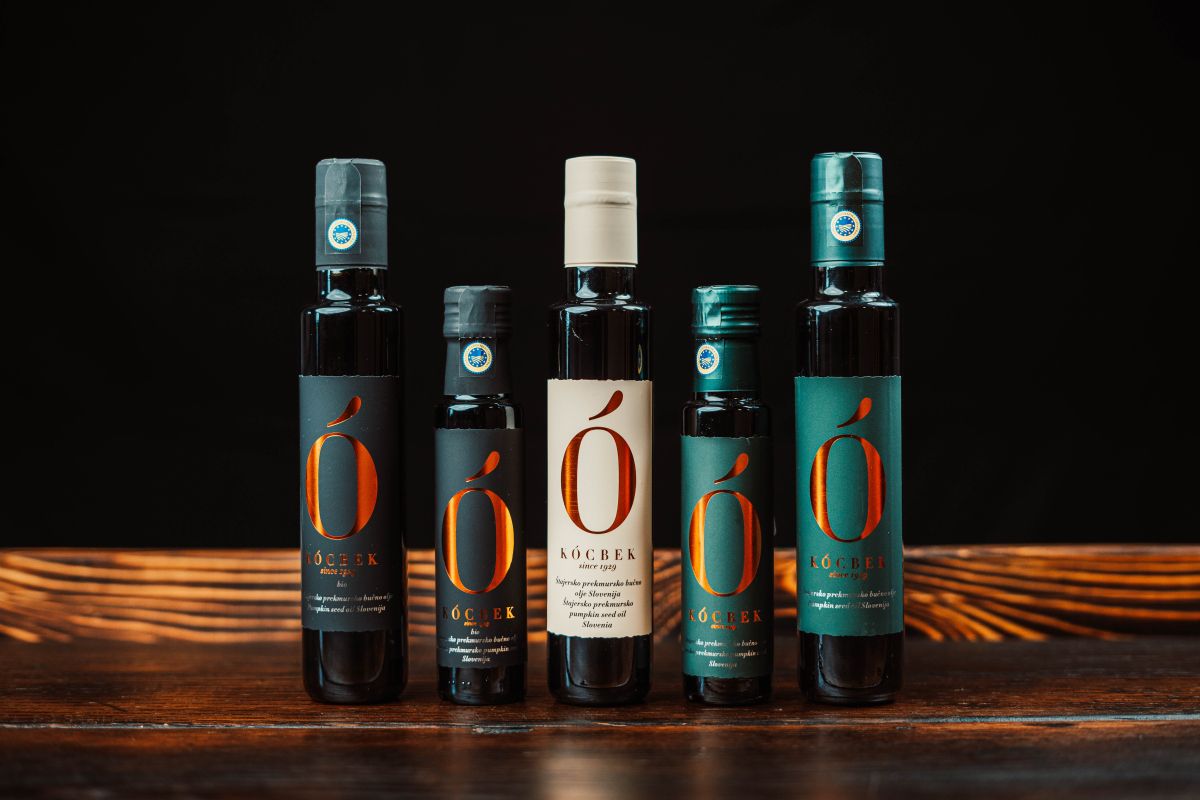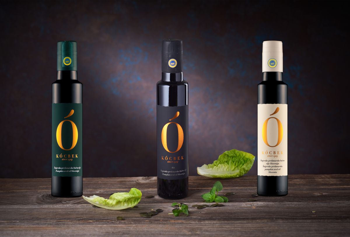 V oljarni Kocbek danes ponujajo kar pet različni bučnih olj. “Imamo tri vrste toplo stiskanega bučnega olja, ki se ponašajo z Zaščiteno geografsko oznako Štajersko prekmursko bučno olje, in jih ločujemo po barvi etikete. Bučno olje označeno z bež etiketo je narejeno tako, da semena meljemo na kovinske valje, pri zeleni etiketi še semena delno meljemo na mlin s kamnom. Potem pa je tukaj še črna etiketa, ki pri nas označuje ekološko – bio bučno olje. Nato sledita dva hladno stiskana bučna olja, ker je eden prav tako narejen iz semen ekološke pridelave.”