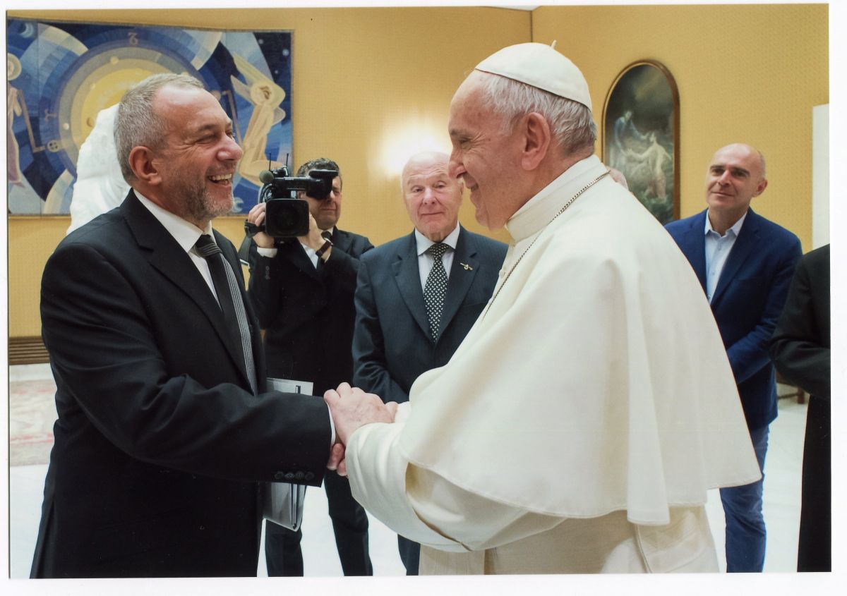 Ob 8.30 uri je kipar Mik Simčič papežu Frančišku na zasebni avdienci v Auletti v sklopu dvorane Janeza Pavla VI v Vatikanu podaril marmorni doprsni kip ob prisotnosti Vatikanskih Eminenc ter kiparjevih spoštovanih prijateljev in podpornikov: kardinala dr. Franca Rodeta, ki je kiparja pri ustvarjanju umetnine ves čas spremljal in podpiral ter tudi uredil omenjeno srečanje; prof. dr. Marjete Zorc, dr. med. in prof. dr. Rude Zorc Pleskovič, dr. med., sester, znanih zdravnic, profesoric in znanstvenih raziskovalk, ki sta srce mednarodnega Centra za kardiovaskularne bolezni Medicor; Boža Dimnika, predsednika Društva Slovensko-Hrvaškega Prijateljstva; Franca Branka Selaka, direktorja družbe Marmor Hotavlje, ki je naredila marmorni podstavek za kip in izvedla zahteven transport kipa v Vatikan; ter Janka Petrovca, dopisnika RTV Slovenija iz Rima.