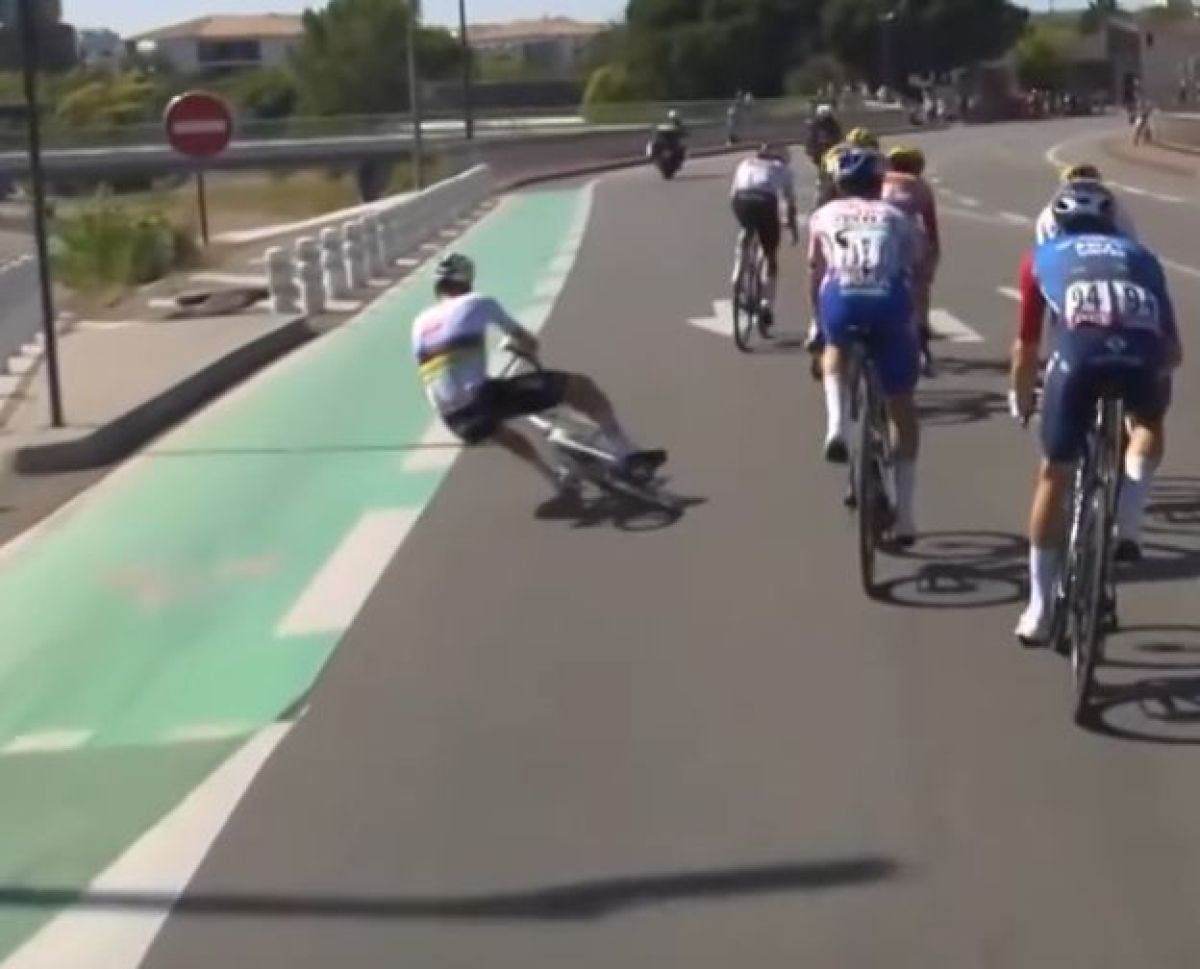 Šestindvajsetletni branilec naslova je proti koncu etape v Toulousu doživel strašljiv trenutek: štiri kilometre pred ciljem je strmoglavil, potem ko je trčil v zadnje kolo Norvežana Tobiasa Johannessena. Vendar se je Pogačar vseeno skupaj z glavnino prebil do cilja. Tam se je svetovni prvak zahvalil tekmecem, ki so ga počakali. "Spoštovanje do pelotona, spoštovanje do vseh. Hvala," je dejal Pogačar.