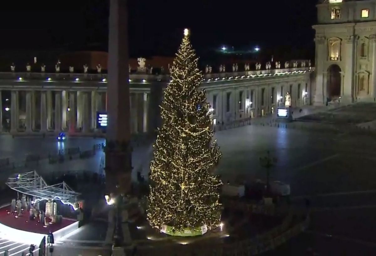 Na Trgu svetega Petra v Vatikanu so danes slovesno osvetlili božično drevo, ki ga je Vatikanu letos podarila Slovenija. Zunanji minister Anže Logar je v svojem govoru ob tej priložnosti poudaril, da je 30 metrov visoka smreka iz kočevskih gozdov darilo in zahvala Svetemu sedežu pri osamosvajanju Slovenije.