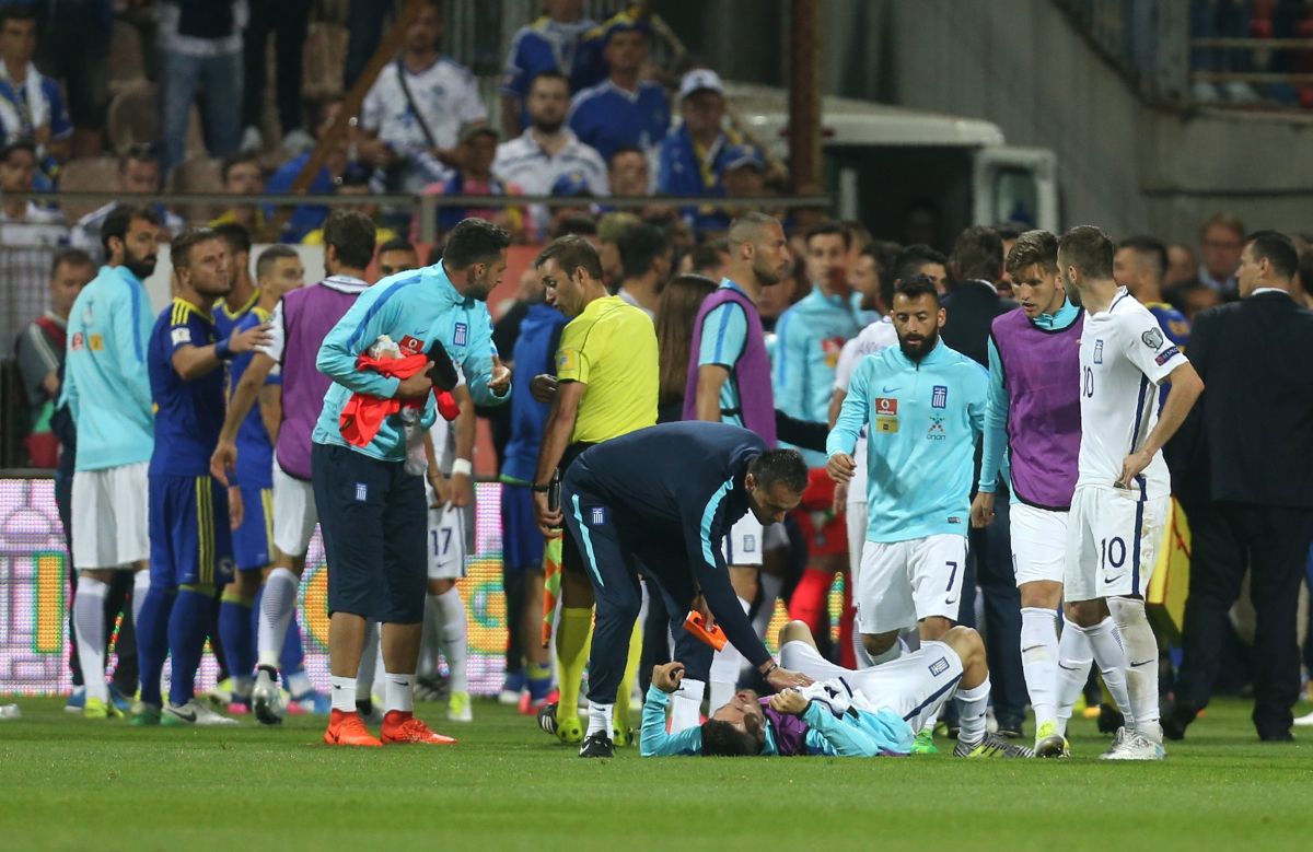 Pomočnik selektorja BiH Francoz Stephane Gilli je grškega reprezentanta Gianniotasa najprej brcnil na nato pa še udaril v obraz in mu pri tem izbil dva zoba.