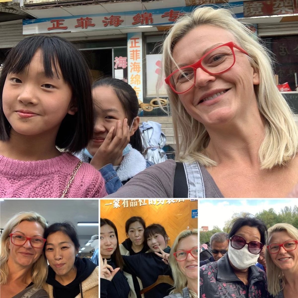 »V predmestju, kjer smo bili nastanjeni, so se vsi domačini želeli fotografirati z nami. Otroci, prodajalci v trgovini … Tam namreč ni veliko tujcev. Kitajci so nori na belo kožo, svetle lase in modre oči, pa tudi temnopoltim se dotikajo njihovih skodranih las, ne da bi jih sploh vprašali, ali smejo. Moji temnopolti prijatelji so včasih prav jezni zaradi tega, ker ne spoštujejo njihovega osebnega prostora. Sonce imajo za zelo škodljivo, na severu so skoraj vse Kitajke zaščitene pred soncem, z oblekami z UV-zaščito, rokavicami, maskami, tudi nekateri moški.«
