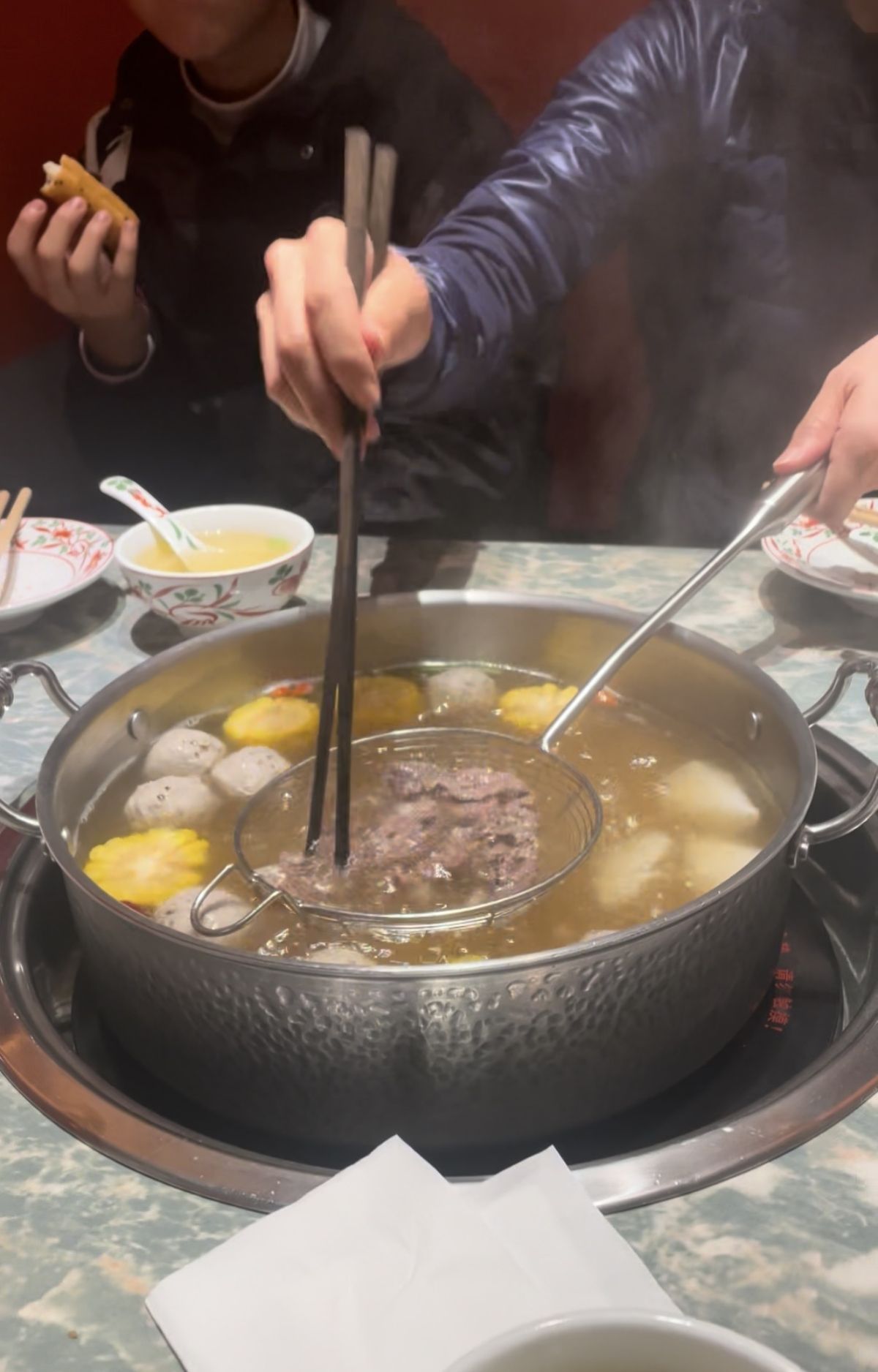»Uporabljajo drugačne začimbe, okusi so čisto drugačni. Pekinško raco na primer postrežejo s tankim testom, raco narežejo na koščke, dodaš mlado čebulo, sveže kumarice, črno sojino omako in malo sladkorja, to zaviješ v tanko testo in vse skupaj je božansko. ‘Hot pot’ sta običajno dve juhi v ločenih posodah, ki še vreta, ena je pekoča, druga ne, in potem v njiju skuhaš meso, račjo kri, zelenjavo, solato ... Pravilo je, da vsako hrano pustiš notri devet sekund, vzameš ven, pomakaš v omako in poješ.«