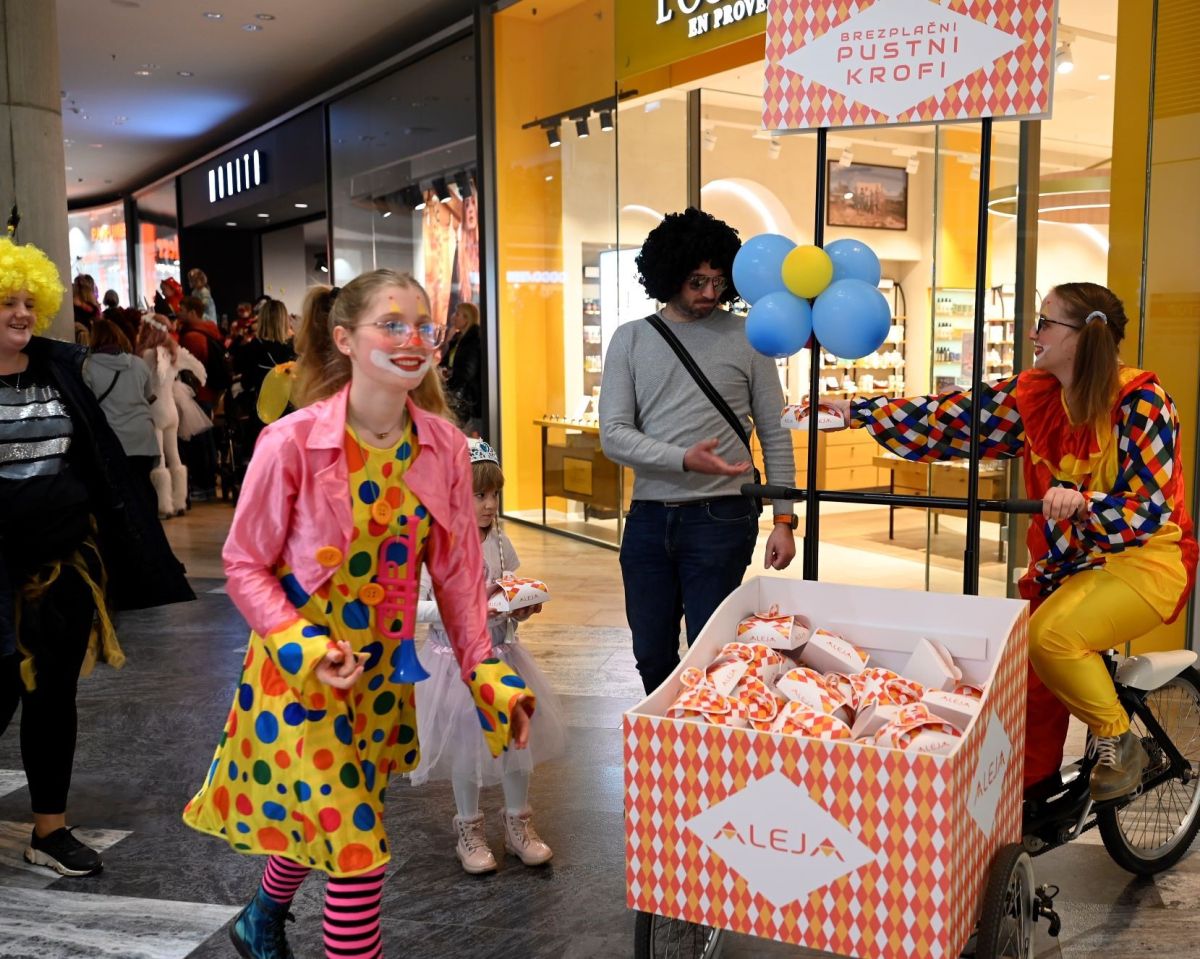 Ples, maškare, slastni krofi, zabava. S temi besedami lahko opišemo veliko pustno rajanje, ki se je več dni odvijalo v ALEJI v družbi Čukov in Ribiča Pepeta. Maškare so preganjale zimo, zganjale norčije in se sladkale s kar 1.300 brezplačnimi krofi. Po nakupovalnih ulicah sta odmevala glasba in smeh, zabavno dogajanje pa je razveselilo obiskovalce vseh generacij.