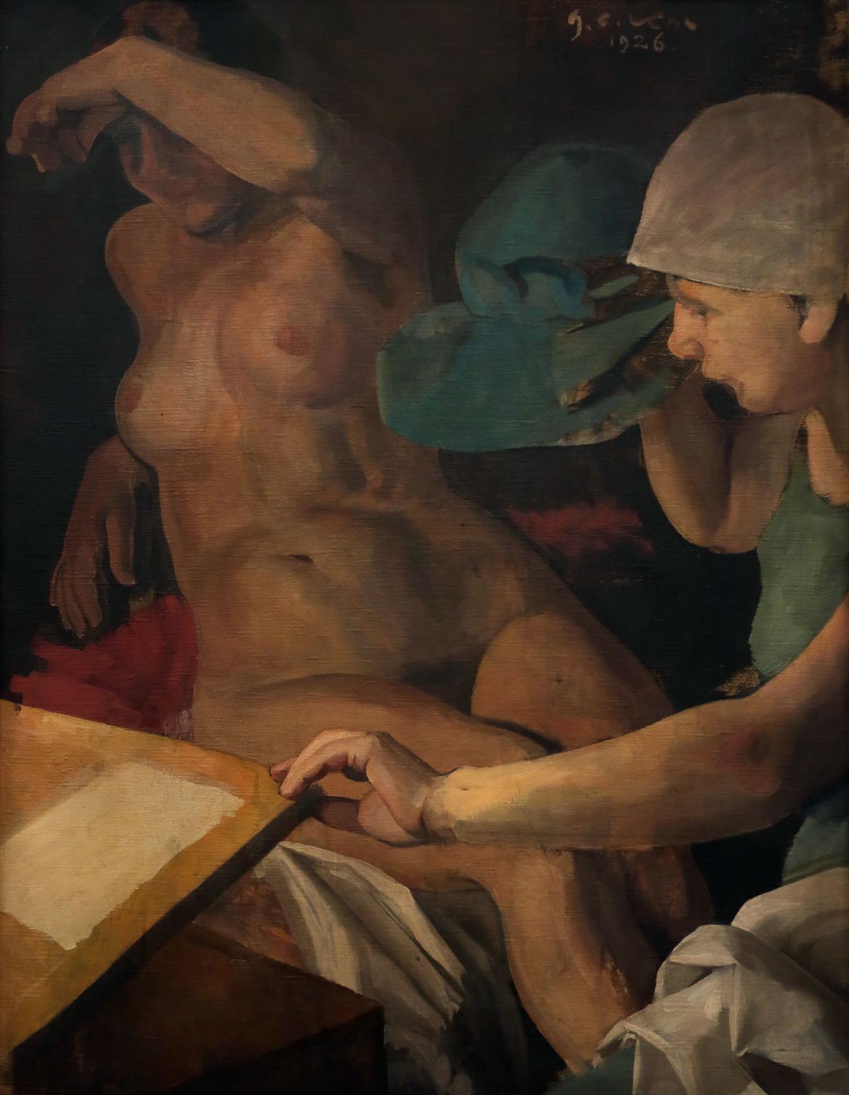 Žive so tudi podobe figur v ambientih, četudi so predane neki mirni dejavnosti (Dekle pod oknom; V ateljeju). Umetniškega zanosa so polni tudi ženski akti, kjer se iz, navadno z redkimi elementi naznačenega prostora, izvije oprijemljivo žensko telo (Akt pri oknu; Akt s slamnikom; Pri toaleti). Barva, svetloba, kompozicija in barvni nanosi aktu dajo mesenost in estetsko erotiko, ki nas vabi, da občudujoče zremo naslikano podobo.