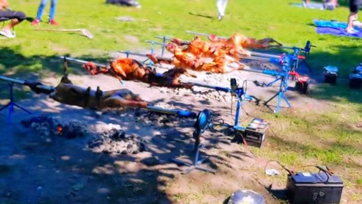 Kot je policija dodala, so ražnje obračali s pomočjo elektromotorjev, ki so bili priključeni na avtomobilske akumulatorje, žerjavica pa je poškodovala zelenico. Policisti so zahtevali dokumente od nekaterih udeležencev dogodka ter vsem naložili, naj čim prej zapustijo park.