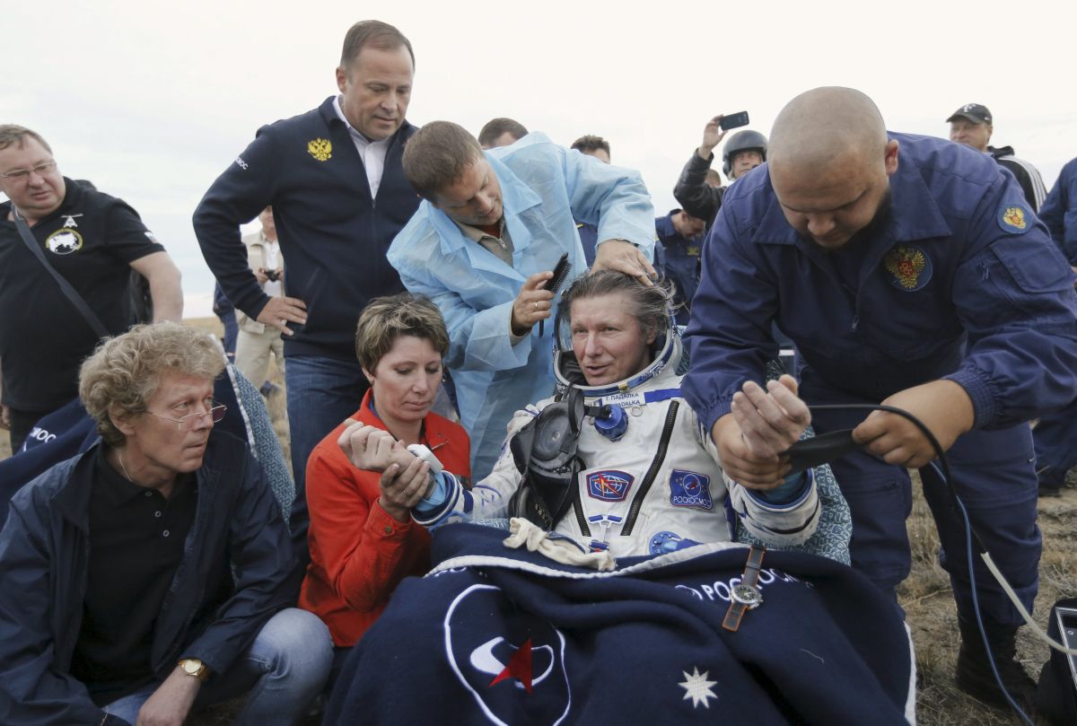 "Počutim se dobro," je po zgodovinskem pristanku dejal Padalka ob skodelici čaja in grizljanju jabolka.