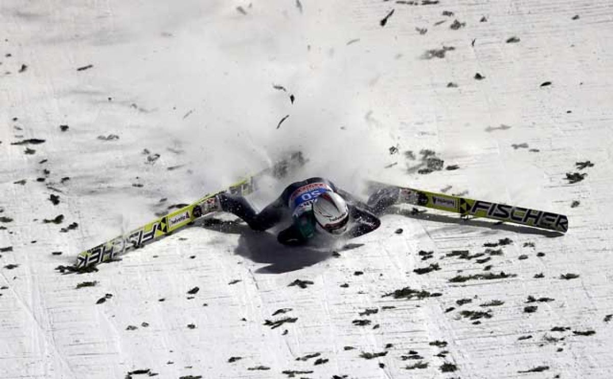 Drugo serijo zadnje tekme novoletne turneje smučarskih skakalcev v Bischofshofnu je zaznamoval tudi hud padec Švicarja Simona Ammanna. Temu je pri doskoku potegnilo smuči narazen in ob padcu je z obrazom močno udaril v tla. Tekma je bila za nekaj minut tudi prekinjena, Švicarja pa so prepeljali v bolnišnico in je že v stabilnem stanju.