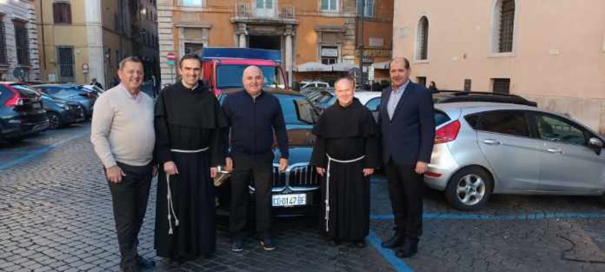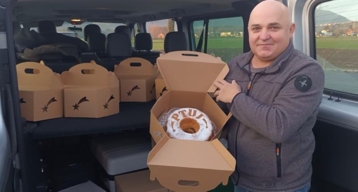 Delegacija ptujskega zavoda in pater Kos so se na pot s kombijem odpravili prejšnji ponedeljek, osem potic je bilo namenjenih papežu in njegovim sodelavcem, ena pa vodstvu minoritskega samostana, kjer so preživeli dve noči, je povedal svetovalec na KGZ Ptuj Peter Pribožič.