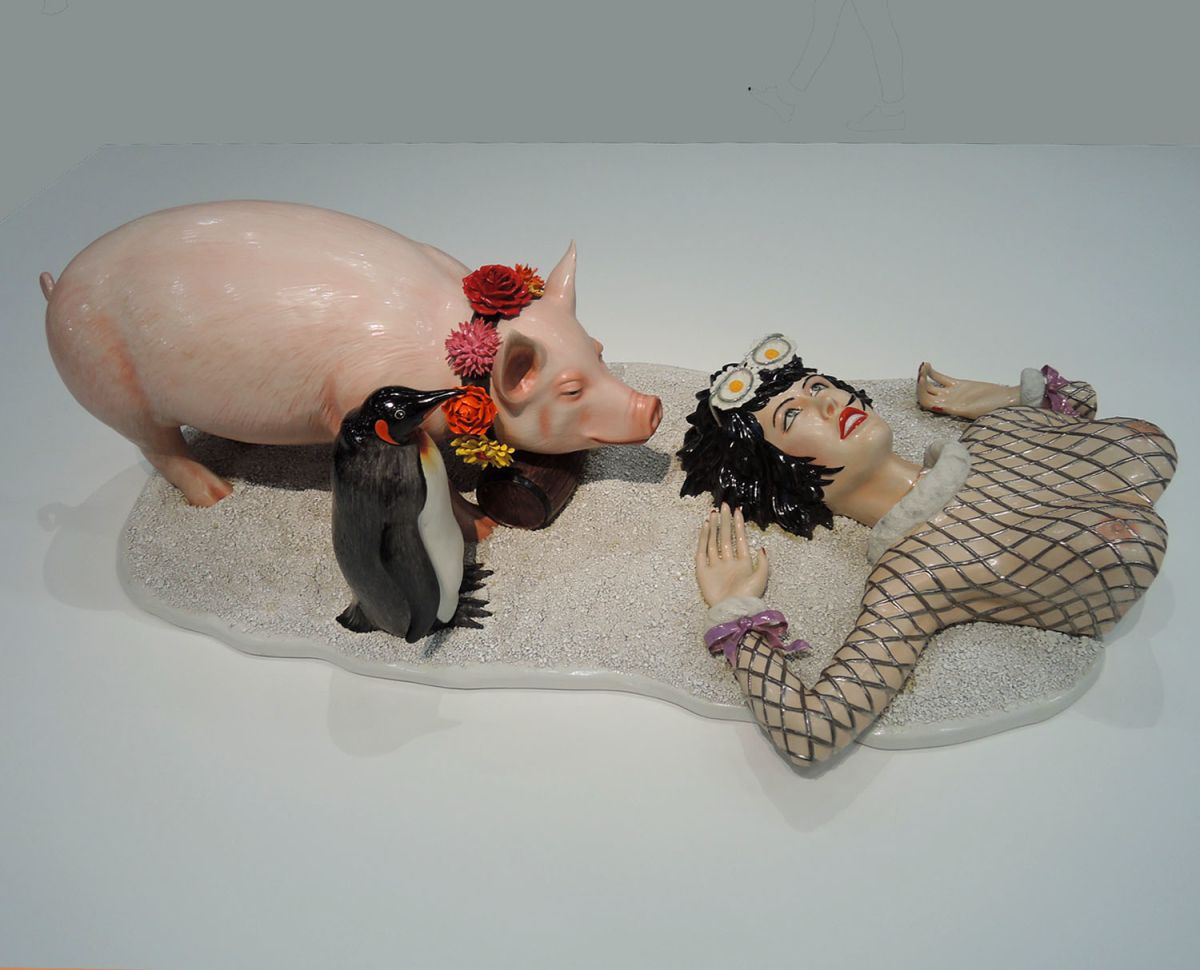 Tožbo proti Koonsu je vložil avtor reklamne kampanje za Naf Naf Franck Davidovici. Skulptura iz porcelana prikazuje zgornji del ženske, ležeče na hrbtu in z rokami za glavo, za njeno glavo stoji prašiček.