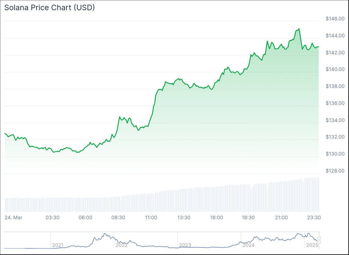Solana ($SOL) se je v zadnjih 24 urah povzpela za 9,3 %. Trg kriptovalut se je zbudil v zelenih številkah po poročilih, da bo ameriški predsednik Donald Trump morda uvedel bolj ciljno usmerjene in manj stroge carine, kot je bilo sprva pričakovano.
