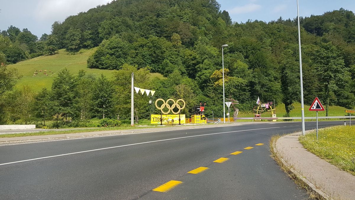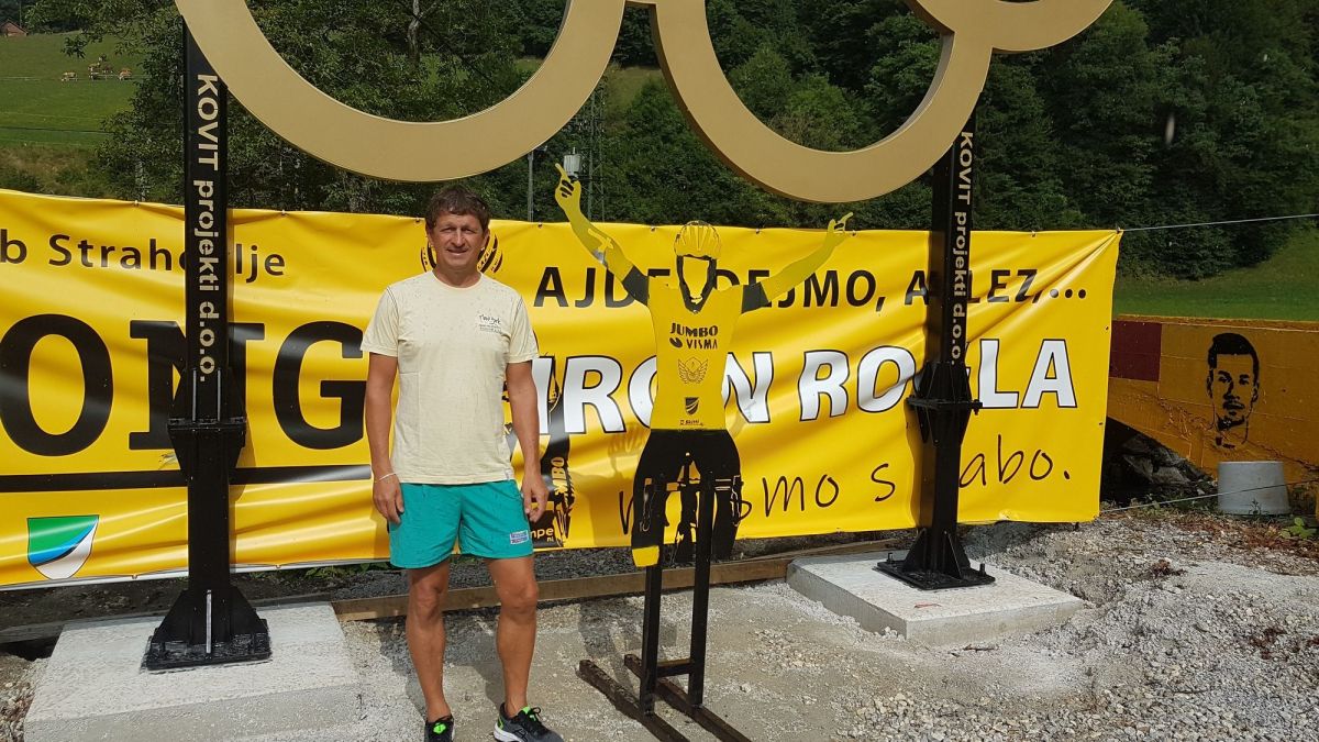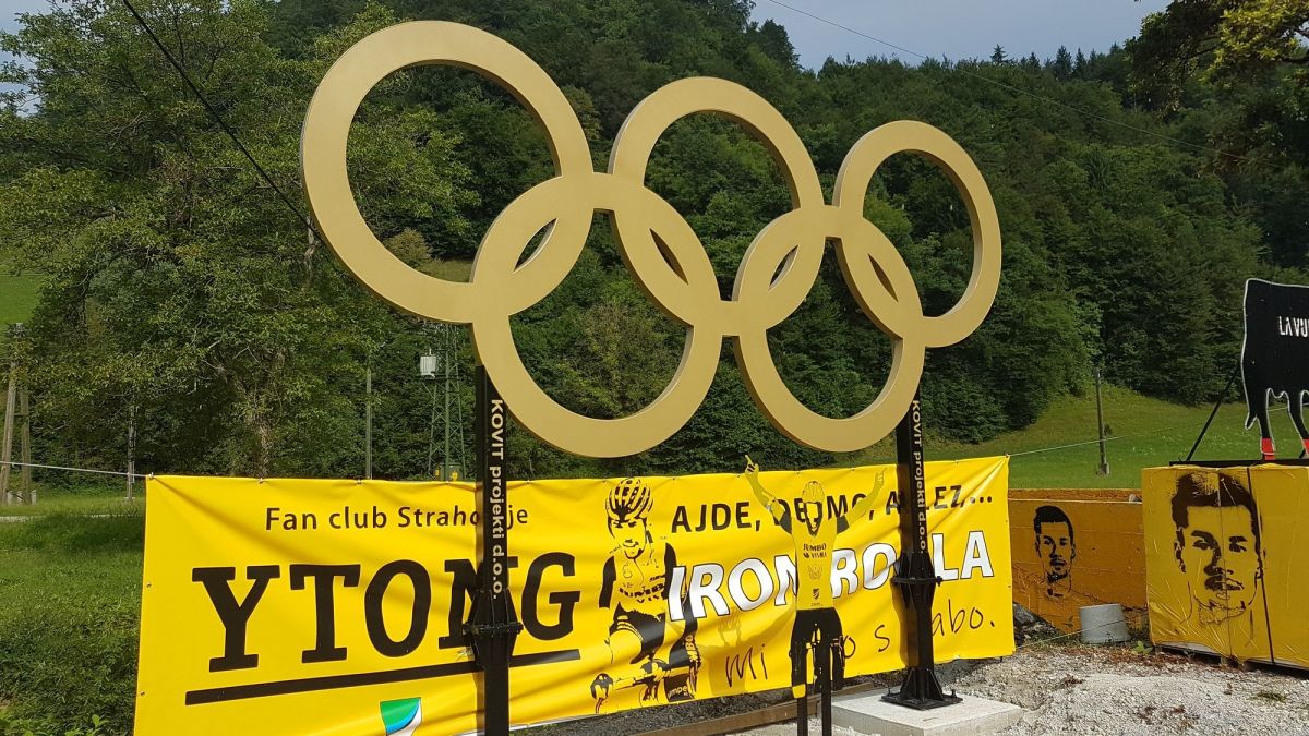 To je tudi eno bolj znanih križišč ob regionalni cesti, kjer potniki pogosto za kratek čas postanejo in se slikajo pred kolesom, postavljenim v čast Primoževim uspehom. Odslej se bodo lahko še pred zlatimi Olimpijskimi krogi, ki so jih včeraj postavili člani Primoževe navijaške skupine. Za svojega Primoža Rogliča- Iron Roglo so pripravljeni storiti marsikaj.