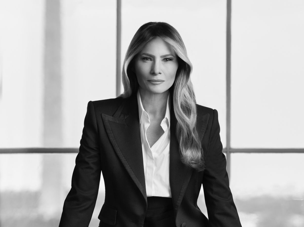 Fotografija je bila posneta dan po Trumpovi prisegi za drugi mandat v t. i. rumeni ovalni sobi Bele hiše, na obrazu prve dame pa za razliko od barvnega portreta iz leta 2017 ni nasmeha. 54-letna prva dama po rodu iz Slovenije je oblečena v temen hlačni kostim in belo srajco.