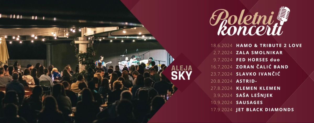 Do konca septembra se bodo zvrstili še: Zoran Čalić Band, Astrid-, Klemen Klemen, Saša Lešnjek, Slavko Ivančić, Sausages in Jet Black Diamonds. Do sedaj sta na torkovih 'after-work' koncertih nastopila Hamo & Tribute 2 Love in Zala Smolnikar, ki sta zapolnila teraso ALEJE SKY do zadnjega kotička.