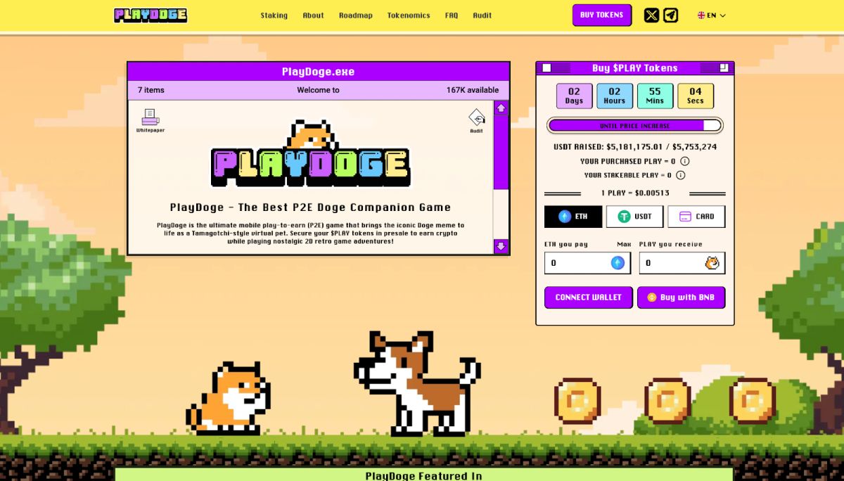 PlayDoge je nastajajoči meme kovanec Play-to-Earn (P2E), ki je trenutno v predprodaji in je zbral že več kot 5 milijonov dolarjev.
