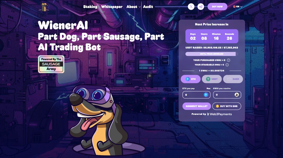 Kot pove že ime, je WienerAI mešanica meme kovanca in kriptovalute z umetno inteligenco.