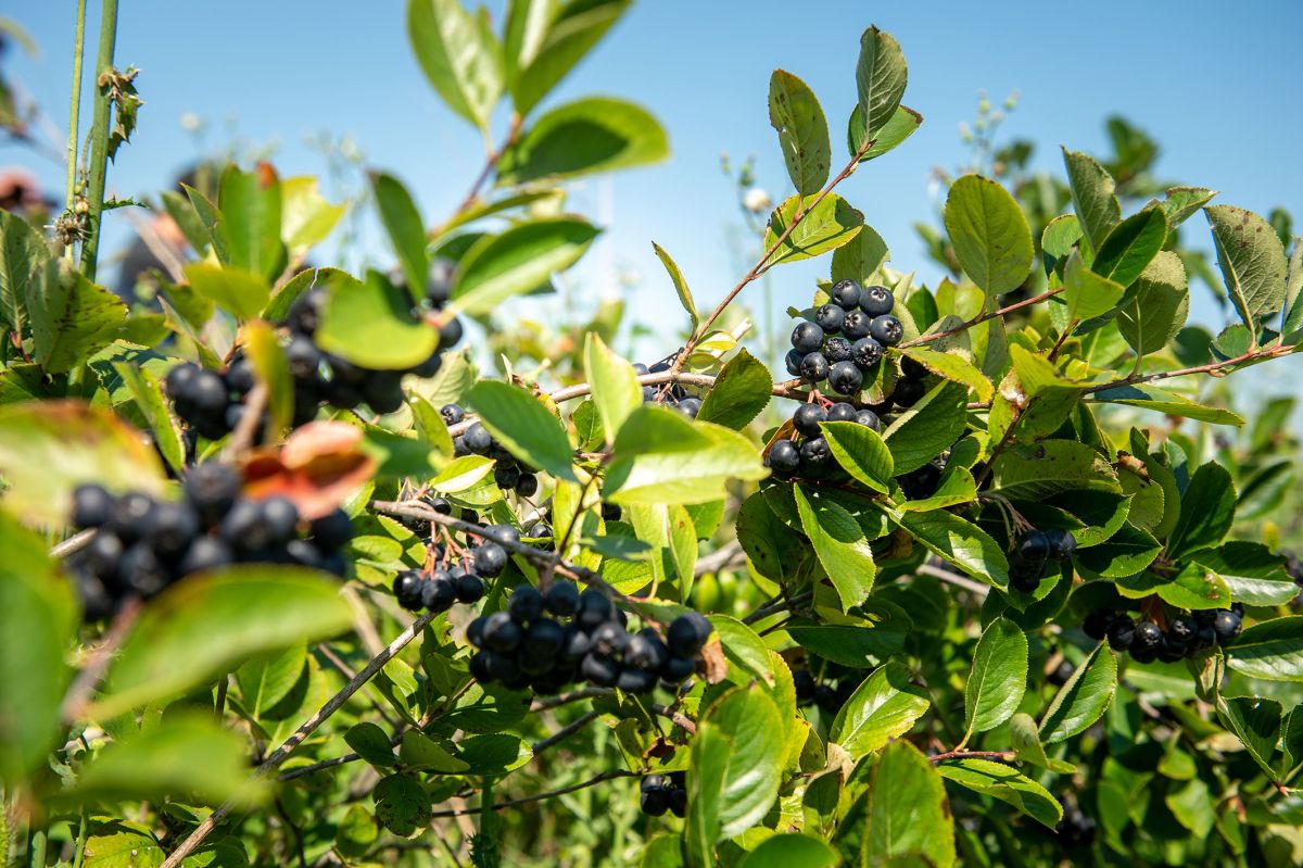 V mesecu aprilu začne aronija belo cveteti, plodove pa pobirajo konec avgusta. Jagode imajo zelo močan okus, k temu prispeva visoka vsebnost flavonoidov, ki dela sok trpek. »Grm aronije prvič obrodi po treh oziroma štirih letih, maksimalno rodnost pa doseže po osmih, ko lahko z enega grma dobimo od osem do dvanajst kilogramov plodov. Sadike se sadijo jeseni, pozimi ali pa zgodaj spomladi, a pod pogojem, da zemlja ni zmrznjena in da se vegetacija še ni začela. Rastline iz zabojnika se lahko sadijo tudi v času vegetacijskega obdobja. V tem primeru se sadika sadi v z vodo namočene jame, po sajenju pa se jih ponovno zalije, da rastline lahko takoj nadaljuje rast. Pomembno je, da mesto, kjer imamo namen posaditi aronijo, skrbno izberemo, saj je kasnejša presaditev lahko otežena zaradi močne razvejenosti korenin. V devetih letih na plodnem zemljišču lahko rastlina aronije razvije koreninski sistem z žilami, daljšimi kot 700 metrov, od tega je približno 90 odstotkov tanjših od enega milimetra,« razloži sogovornik in še pove, da se zrele plodove lahko jé sveže.
