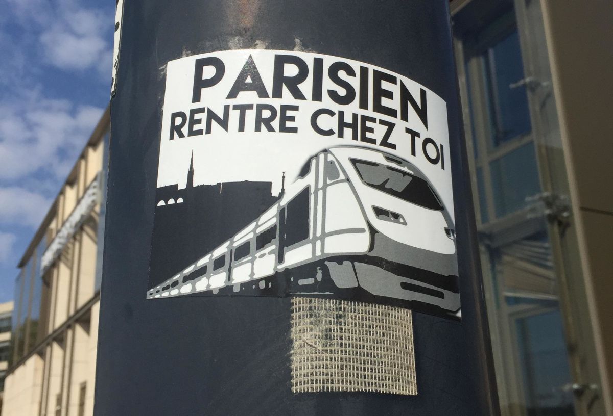 "Parižani, pojdite domov," po poročanju regionalnega časopisa Sud-Ouest piše na plakatih, ki so jih razobesili po mestu. Na njih je tudi fotografija hitrega vlaka TGV, navaja francoska tiskovna agencija AFP.