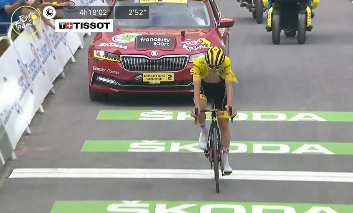 Danec Jonas Vingegaard je z zmago v 11. etapi kolesarske dirke po Franciji prevzel tudi rumeno majico vodilnega. Petindvajsetletni Danec je v vročini in na visoki nadmorski višini na trasi od Albertvilla do prelaza Granon izkoristil krizo slovenskega asa Tadeja Pogačarja, ki je v etapi zasedel sedmo mesto, a zaostal velikih 2:51 minute.