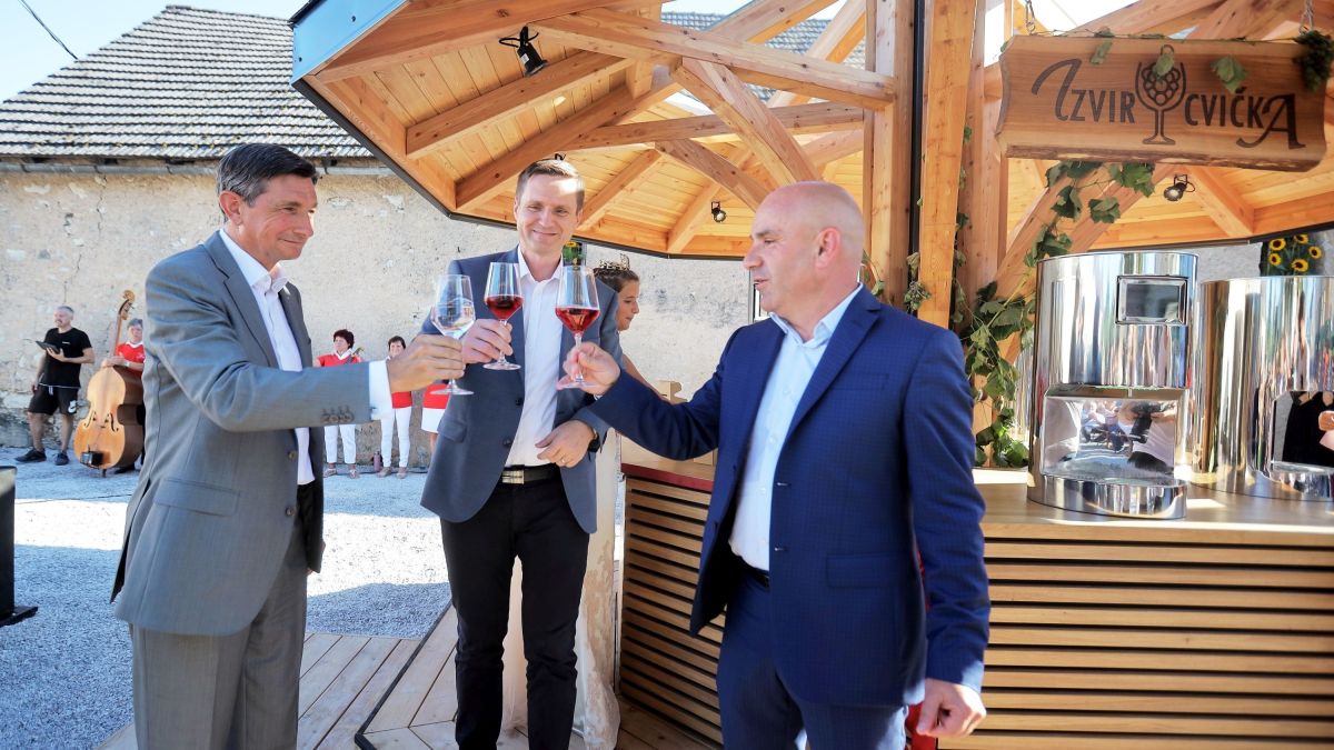 V Šmarjeti, središču občine Šmarješke Toplice, so včeraj uradno odprli cvičkovo fontano, od katere si ta turistično naravnana dolenjska občina obeta okrepitev prepoznavnosti in obogatitev turistične ponudbe. Z njo želi tudi podpreti domače vinogradništvo in vinarstvo ter promovirati cviček. Odprtje je pospremil tudi predsednik republike Borut Pahor.