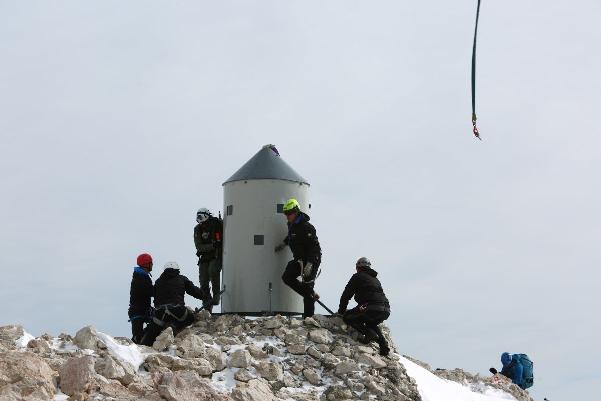 Pred transportom stolpa na Triglav je helikopter Slovenske vojske tja odpeljal strokovnjake Zavoda za varstvo kulturne dediščine Slovenije (ZVKDS), ki vodijo projekt Aljažev stolp - Ohranimo naš simbol, in delavce jeseniškega podjetja KOV, kjer so v minulih tednih poskrbeli za velik del sanacije pločevinastega stolpa.