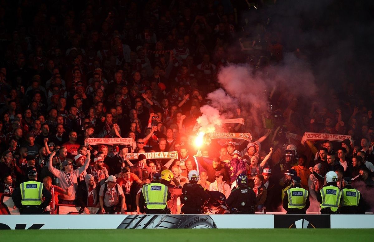 Tekmo 1. kroga nogometne evropske lige v skupina H med Arsenalom in Kölnom je povsem zasenčil kaos, ki ga je povzročil prihod približno 20.000 nemških navijačev, ki so preplavili London.
