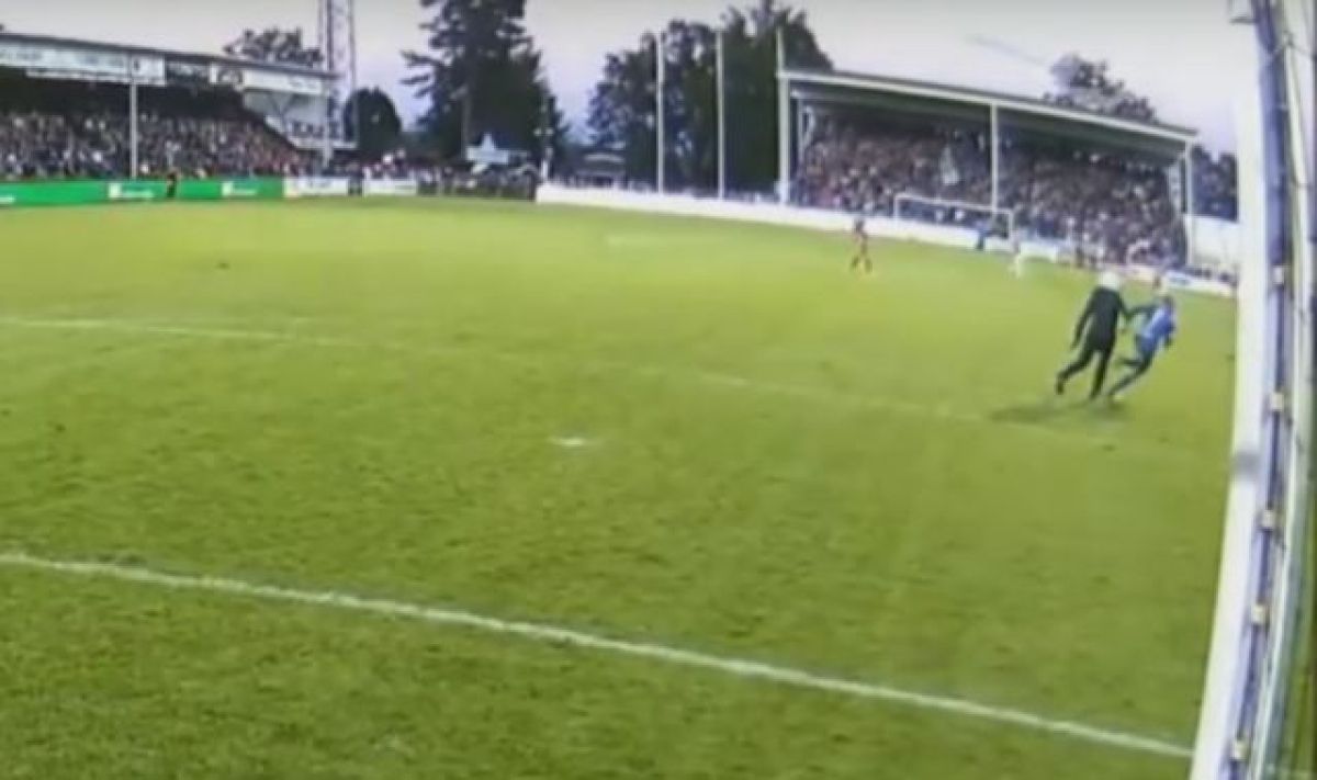 VIDEO: Maskirani navijač vdrl na nogometno igrišče in napadel vratarja