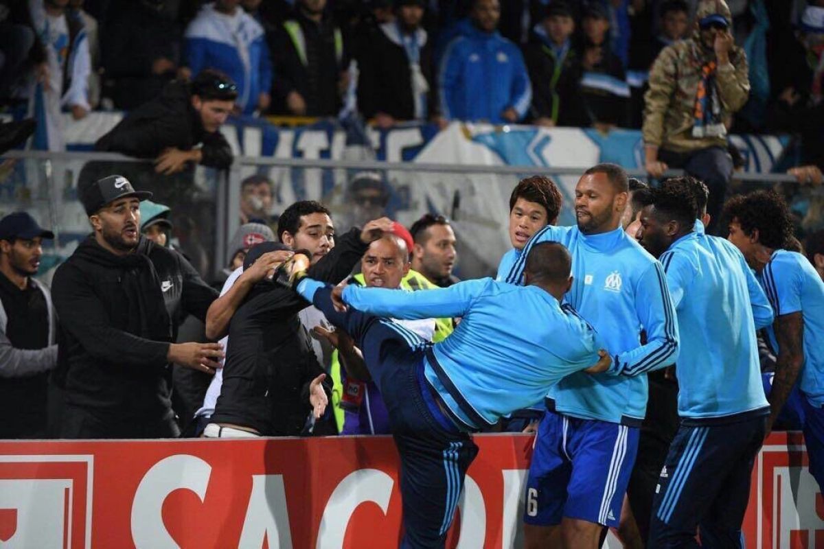 Marseillovi navijači so med ogrevanjem pred začetkom tekme izzivali Evraja in soigralce francoske ekipe. V nekem trenutku je bilo Evraju dovolj in odločil se kopirati svojega slavnega rojaka Erica Cantonaja, ki je leta 1995 brcnil navijača Crystal Palacea.