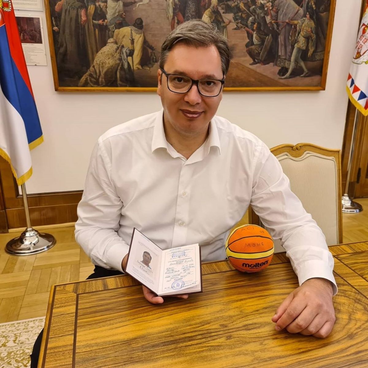 "Drugič v življenju sem postal študent. Tokrat na Visoki športni šoli strokovnih študij, z željo, da postanem košarkarski trener za mlade. Ne boste verjeli, kako sem srečen, ker sem po toliko letih začel uresničevati svoje sanje," je napisal Vučić in temu priložil fotografijo z indeksom in majhno košarkarsko žogo.