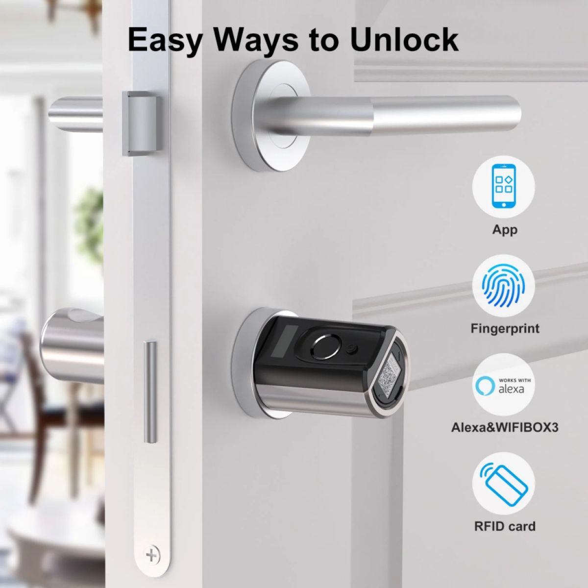 Še naprednejši model WELOCK smart lock ToucA51 prinaša 6 načinov odpiranja: prstni odtis (z AI tehnologijo za še hitrejše prepoznavanje v 0,3 sekunde), tipkovnico z anti-vohunsko zaščito (lahko vtipkate naključne številke pred in za pravo kodo), RFID, aplikacijo, Bluetooth in celo glasovno upravljanje prek Alexa (z dodatnim WiFibox3).