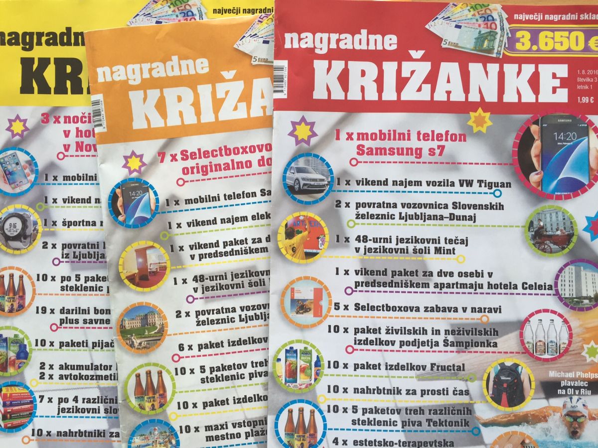 Z reševanjem križank lahko pridete do naslednjih nagrad:
