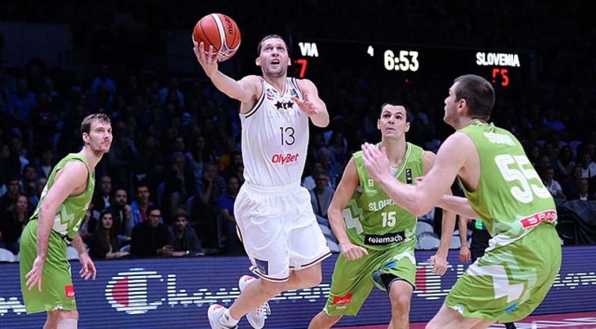 Košarkarji Slovenije so v osmini finala evropskega prvenstva v Lillu izgubili z Latvijo s 66:73 (20:20, 40:42, 52:55).