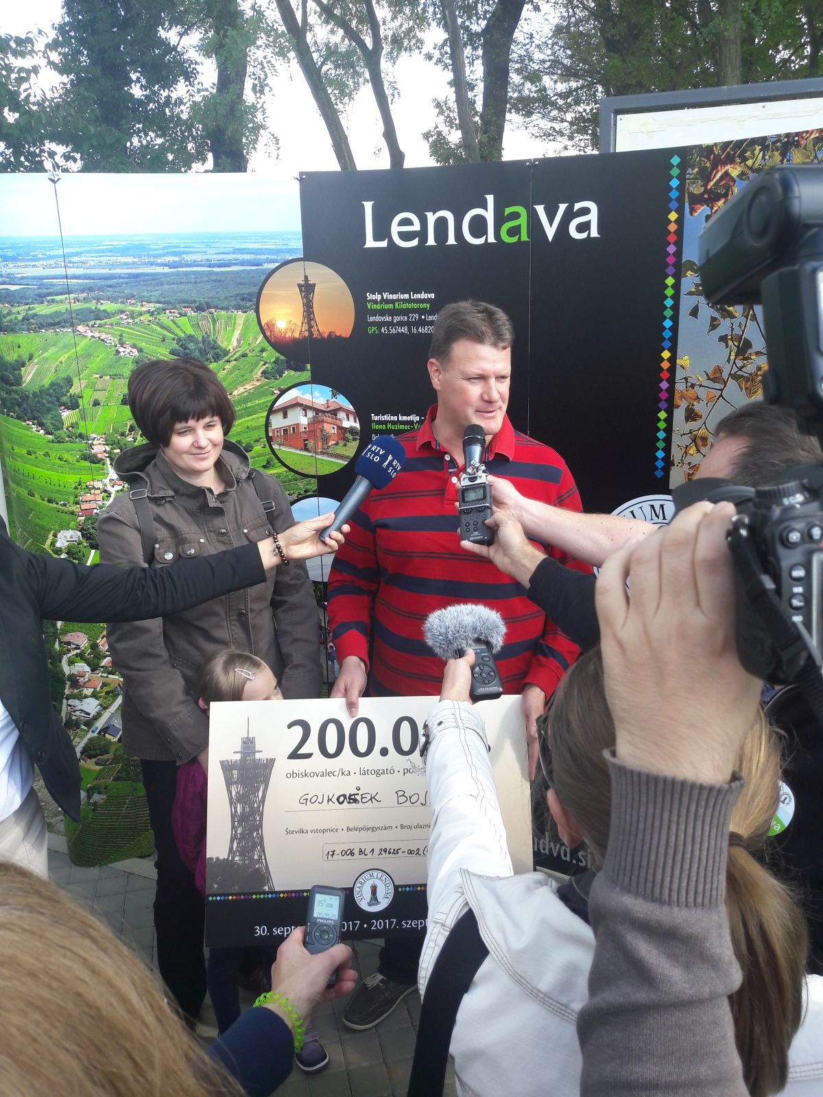 Sreča je hotela, da je v množici, ki je zadnjo septembrsko soboto prišla v Lendavo, da se povzpne na najvišji razgledni stolp v Sloveniji, visok je namreč 53,5 metra, jubilejno, torej 200 tisočo vstopnico kupila družina Bojana Gojkovška iz Maribora.