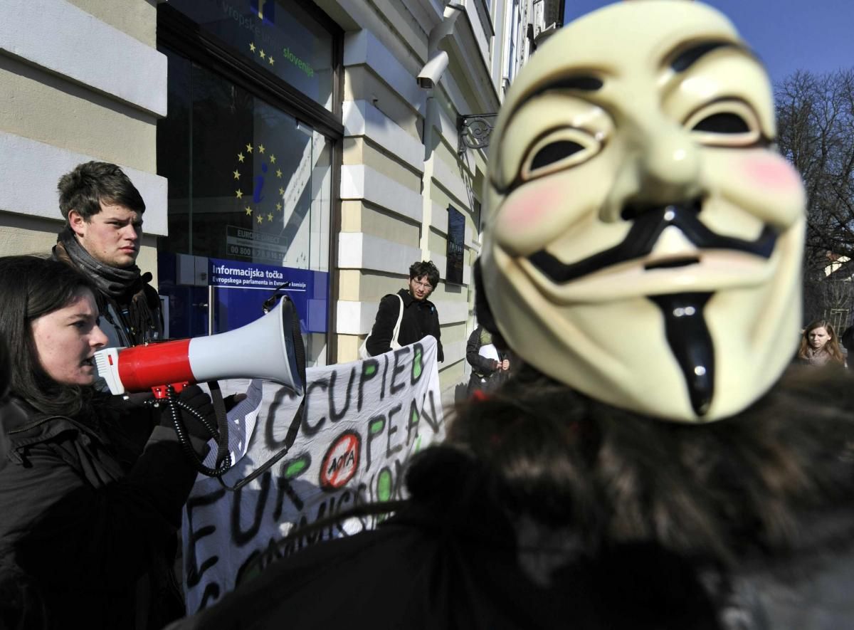 Okoli 16 aktivistov gibanja 15o pa je dopoldne v protest proti Acti želelo zasesti prostore predstavništva Evropske komisije v Ljubljani, a so ostali pred zaprtimi vrati. Protestniki so zato poudaril, da problem v Evropi ni javnofinančni, ampak demokratični primanjkljaj.