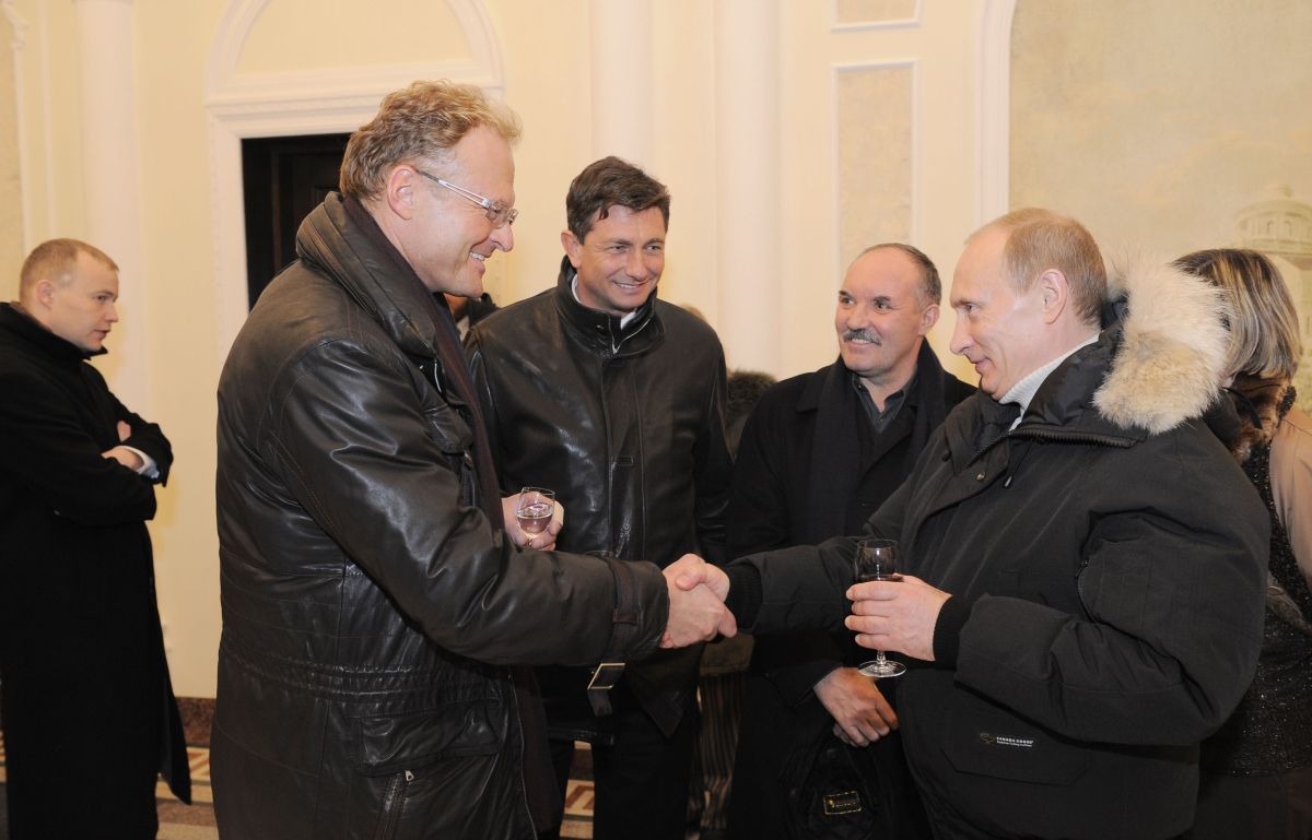 Janez Škrabec ima odlične zveze v politiki. Na sliki Janez Škrabec (levo) na sprejemu za ruskega predsednika Vladimirja Putina (desno) s predsednikom Borutom Pahorjem (v sredini).