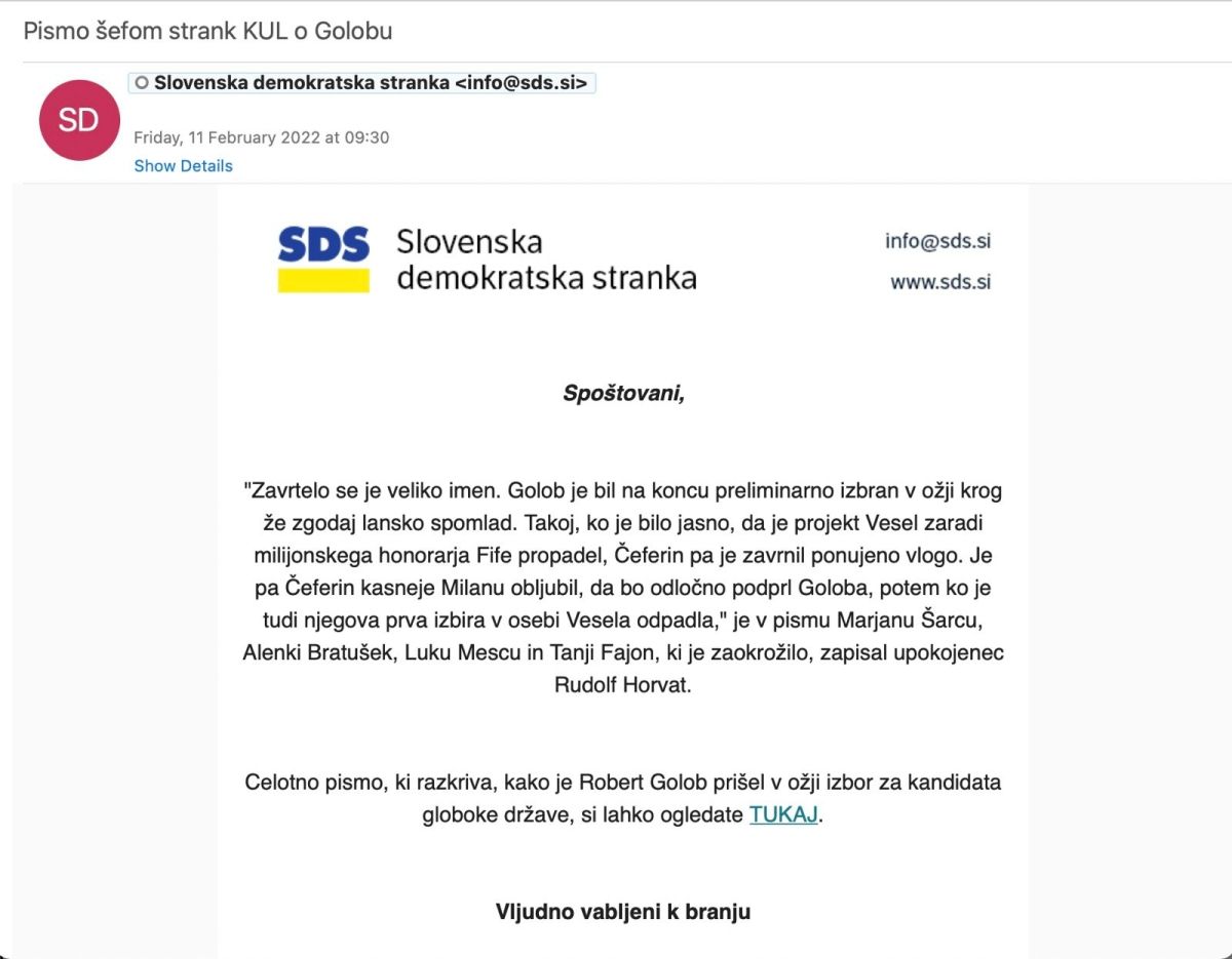Včeraj so vladni mediji objavili pismo domnevnega upokojenca Rudija Horvata predsednikom strank KUL, v katerih ta »razkriva«, kako so »strici iz ozadja« pred volitvami instalirali novi politični obraz Roberta Goloba.