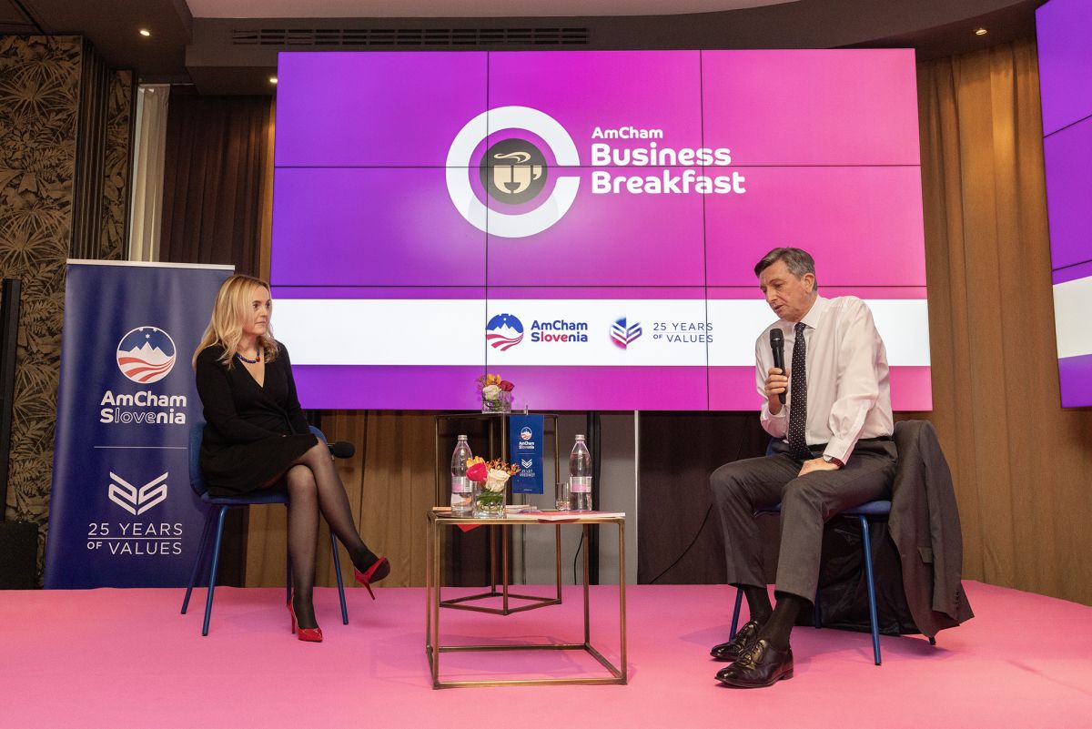 Na prvem AmCham Poslovnem zajtrku v letu, ko AmCham Slovenija praznuje srebrni jubilej in s tem tudi 25 let vrednot, so bile srčika razprave prav vrednote najbolj aktivne mednarodne poslovne skupnosti v Sloveniji. Tudi posebni gost dogodka gospod Borut Pahor, bivši predsednik Republike Slovenije in avtor knjižnega prvenca Zmaga je začetek, je spregovoril o vrednotah, ki bodo prispevale k ustvarjanju zmagovalnega okolja v letu 2024, pri čemer je integriteto označil za temeljno, saj če ne zaupaš sebi, če ne verjameš vase, izgubiš kompas tudi za vse ostalo.