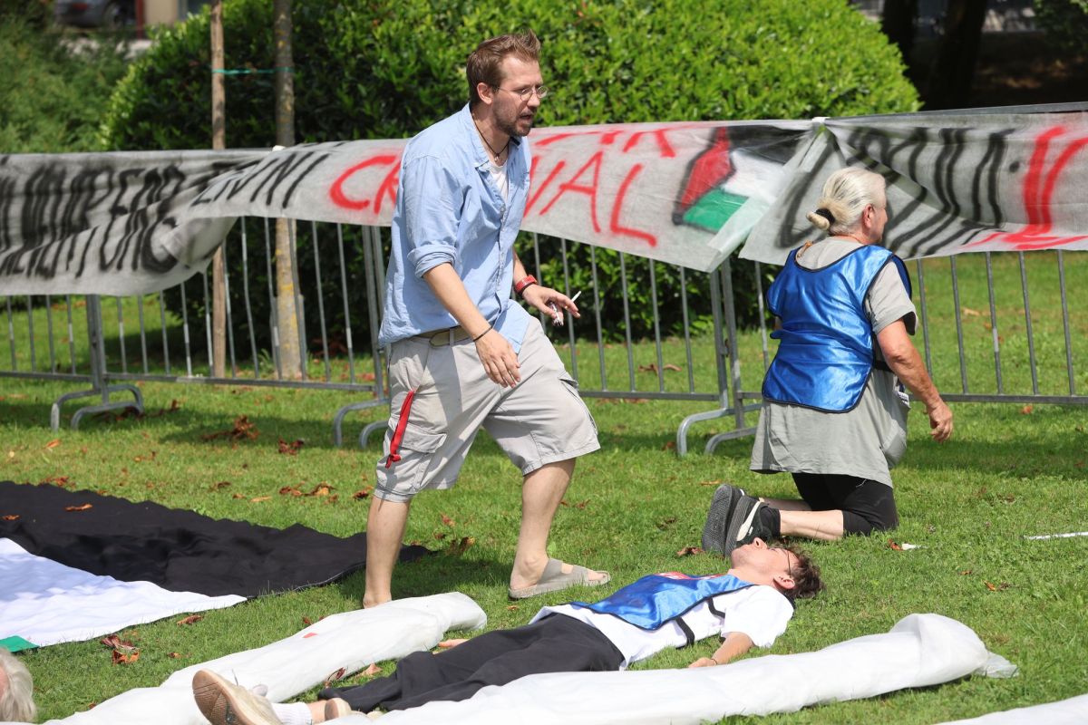 Vsi pozivi EU k prekinitvi nasilja Izraela nad Palestincem so prazni, dokler ni konkretnih ukrepov, so danes opozorili govorci na protestu nevladnikov pred začetkom Blejskega strateškega foruma (BSF). Obenem so izpostavili dvoličnost, ki da jo z vabilom nekdanje izraelske zunanje ministrice Cipi Livni na Bled, izkazuje slovenska vlada.