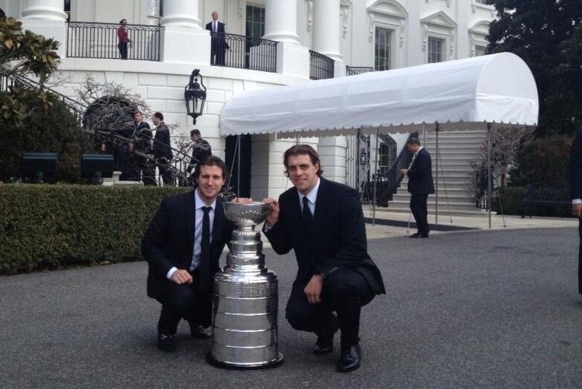 Ameriški predsednik Barack Obama je v torek v Beli hiši sprejel zmagovalce severnoameriške hokejske lige NHL Los Angeles Kings, med slavljenci pa je bil tudi slovenski hokejski as Anže Kopitar, ki je na twitterju objavil svojo fotografijo s Stanleyjevim pokalom pred Belo hišo.