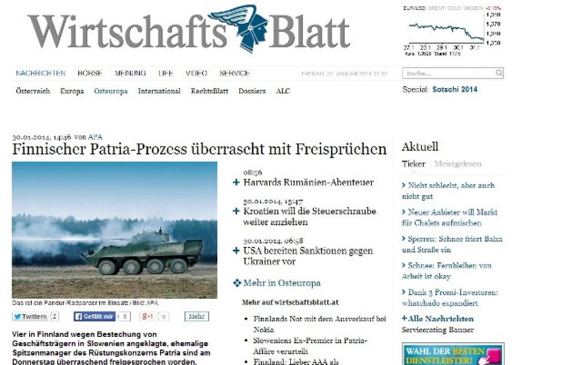 Avstrijski Wirtschaftsblatt: Presenetljive oprostitve v finskem procesu Patria