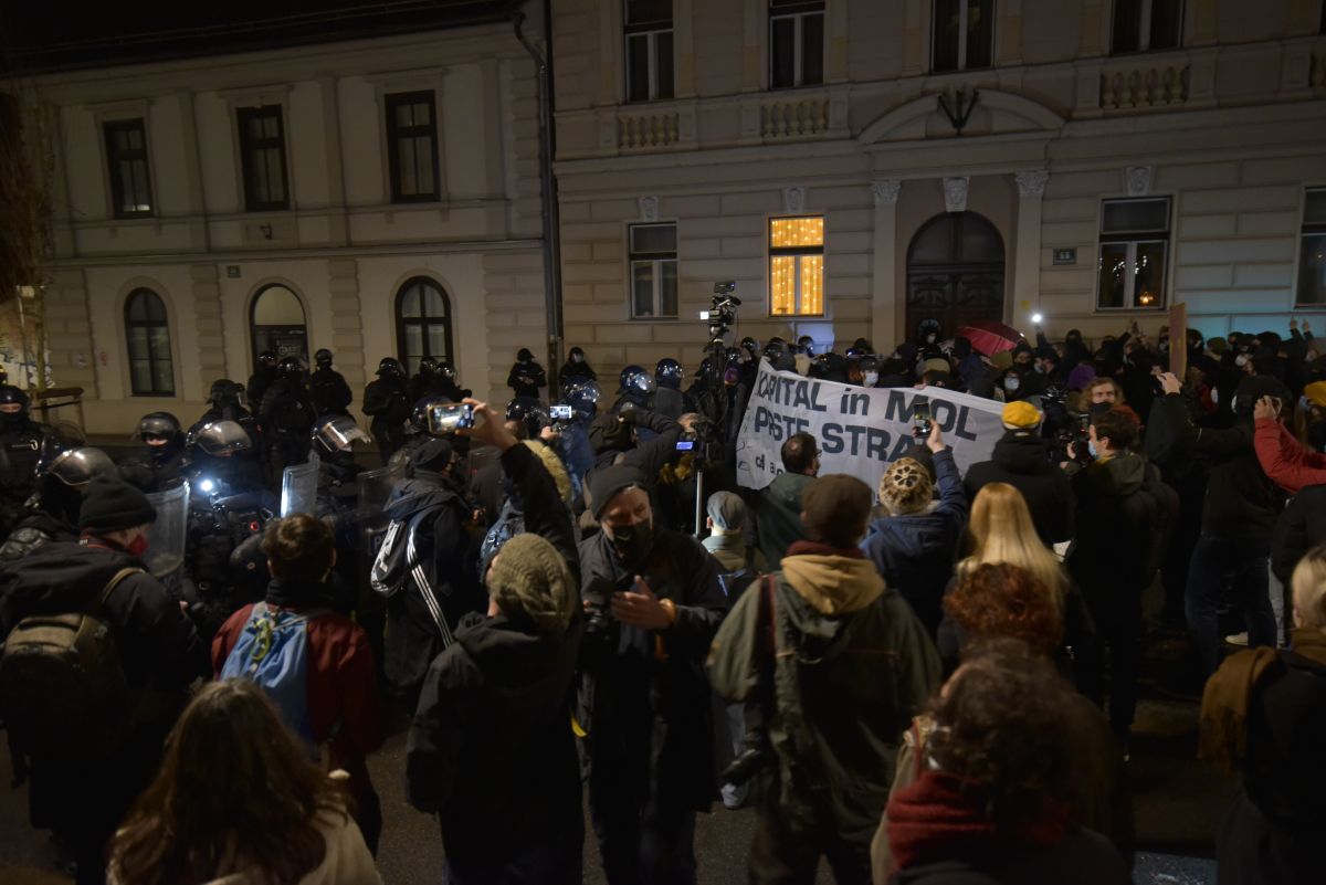 Po navedbah Policijske uprave Ljubljana je okoli 19.30 "prišlo do pritiska množice na policiste v kordonu, zato so uporabili telesno silo za odrivanje s ščiti, ter plinski razpršilec". Pri tem nihče ni bil telesno poškodovan, eni osebi so nudili zdravniško pomoč zaradi uporabe plinskega razpršilca. Ena osebo so policisti pridržali za čas protestnega shoda.