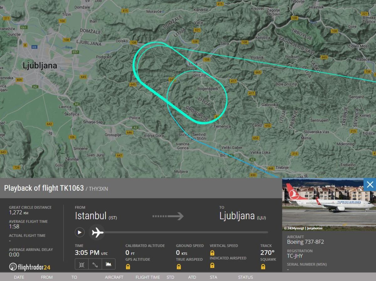 Bizarno: letalo iz Istanbula krožilo nad Litijo, nato pa se zaradi megle obrnilo nedaleč od Brnika