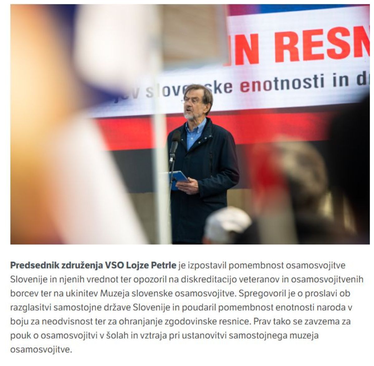 Peterle zdaj vodi Združenje za vrednote slovenske osamosvojitve, ki je v sredo protestno zborovalo na Trgu republike pred državnim zborom zaradi ukinitve muzeja slovenske osamosvojitve. Združenje VSO je veteranska in domoljubna organizacija pod nadzorom prvaka SDS Janeza Janše, ki je leta 2020 vodenje društva prepustil Peterletu, potem ko je njegov prejšnji predsednik Aleš Hojs v takratni vladi prevzel vodenje ministrstva za notranje zadeve.
