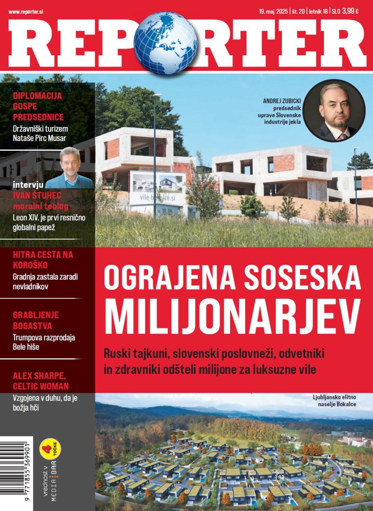 Na Bokalcah ob ljubljanski obvoznici je zraslo najbolj elitno naselje v Sloveniji, kjer so najdražje vile prodajali za več milijonov. V novem Reporterju pišemo o enem najbogatejših Slovencev, ki je preko svojih družb kupil kar tri luksuzne nepremičnine v ograjeni soseski.