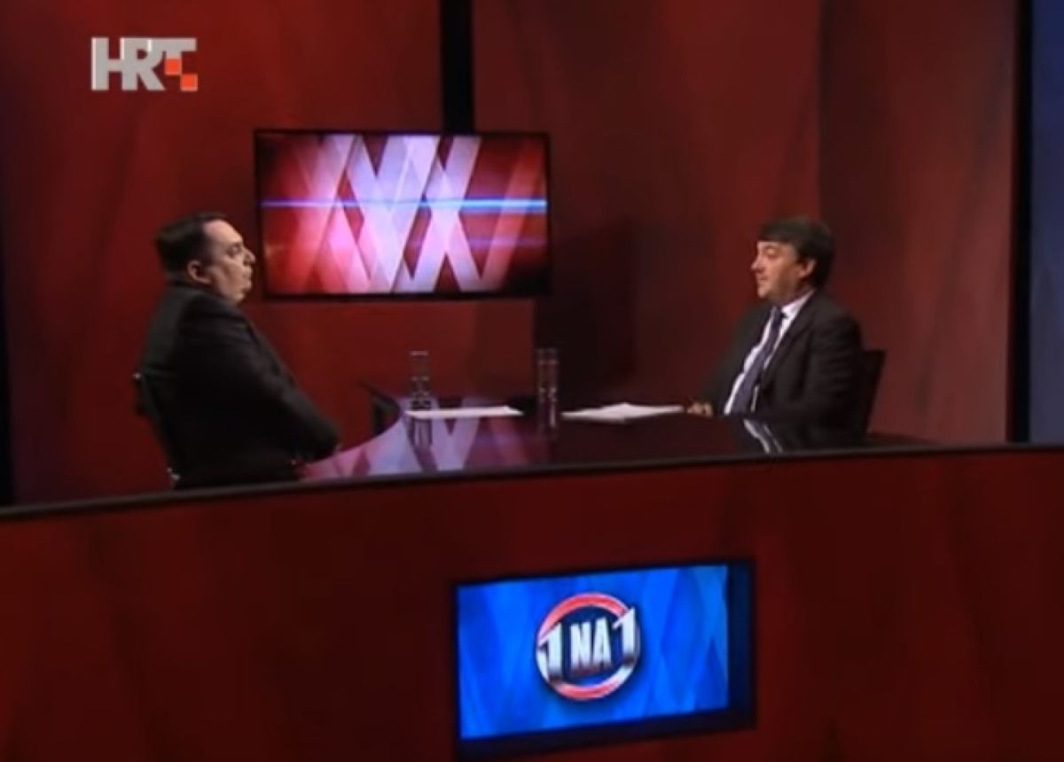 Boštjan M. Turk, kolumnist Reporterja, je nastopil kot gost v oddaji Ena na ena, Romana Bolkovića, priznanega urednika Hrvaške radiotelevizije.