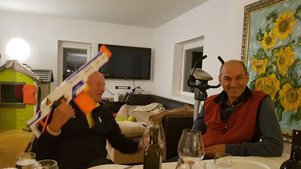 Morda je s temi zgodbami šarmiral tudi prvaka SDS in premierja Janeza Janšo, s katerim je večkrat skupaj igral golf na Mavriciju, se vozil z luksuzno jahto Andreja Marčiča in ga obiskal celo doma v Šentilju pri Velenju, ko je pred fotoaparatom poziral z otroško plastično puško.